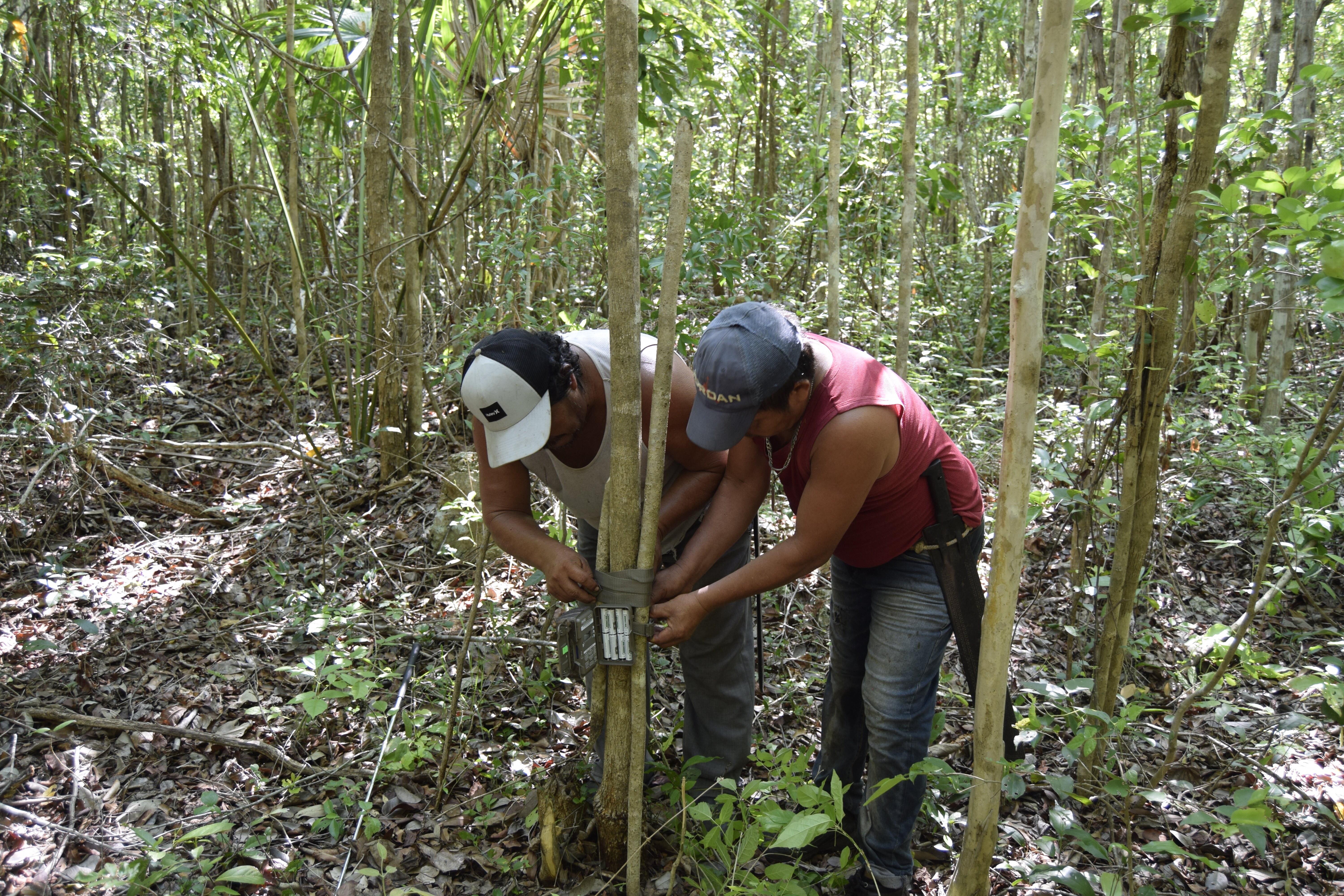 Conducting a wildlife survey in such a vast, dense jungle is no small feat. Our biodiversity team – led by field biologists Edith Berenice Espinosa García and Aida Medina Agustín – spent weeks deep in the field for this baseline. Together with community members trained as para-biologists, they set up an array of camera traps and acoustic monitors to become the “eyes and ears” of the forest day and night. Camera traps are motion-activated cameras strapped to trees, and they silently snap photos of any creature that walks by. These gadgets allowed us to observe elusive, mostly nocturnal animals without disturbing them. “These camera traps are like our hidden allies – working 24/7 so we can peek into wildlife’s secret life,” says Edith, who has spent over a decade studying Yucatán’s fauna. The cameras were carefully placed near animal trails, water sources, and fruiting trees – spots our local guides suspected were wildlife hot spots. Each camera trap, equipped with infrared sensors, captures images even in the pitch dark, giving us a window into the forest’s nightlife.